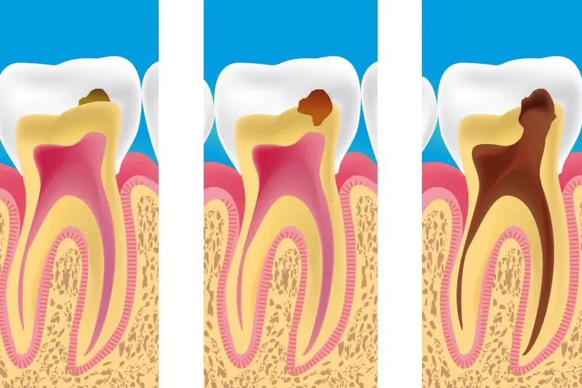 О развитии скрытого кариеса сигнализирует наличие темной эмали на зубах. Служит развитию кариеса сладкая, горячая, соленая, холодная еда. Неприятные ощущения и боль зуба, говорят о заражении болезнью нервных тканей зуба. Позднее обращение к врачу с такими симптомами, могут причиной удаления зуба.